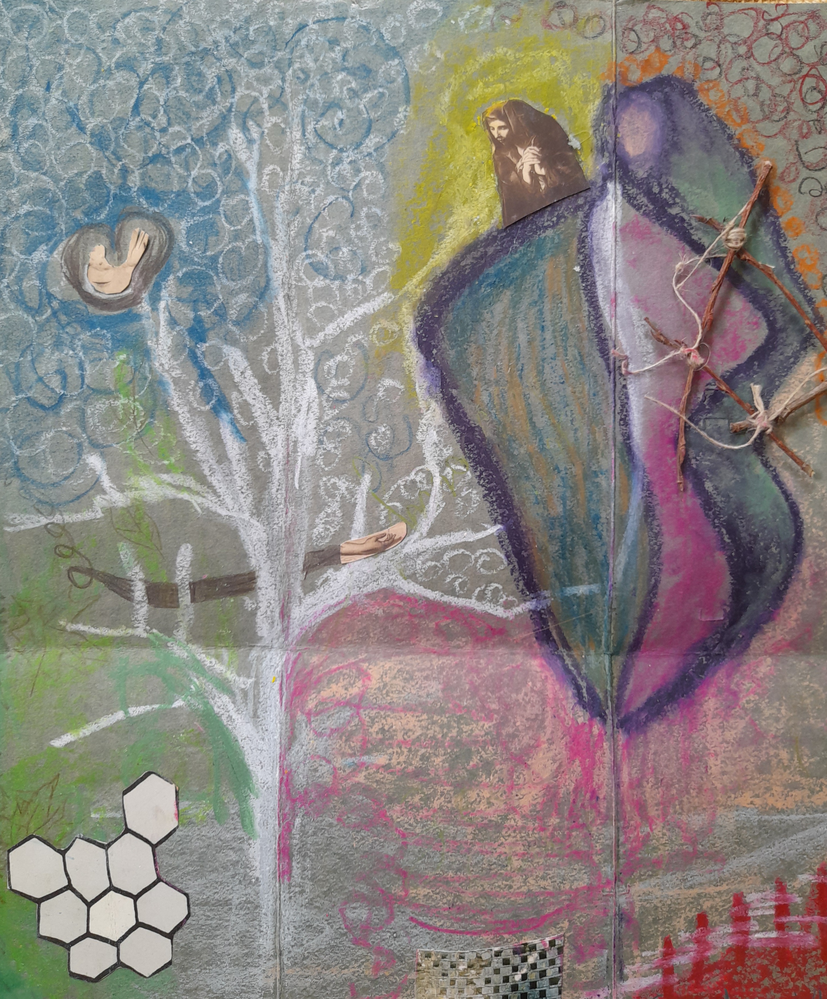 In my sessions the client uses painting, drawing, collage and printing as means for personal exploration. Additionally I offer the use of clay for sculptural expression. Through this material, the connection to nature and the elements is established and a deep encounter with one’s own physicality is made possible.